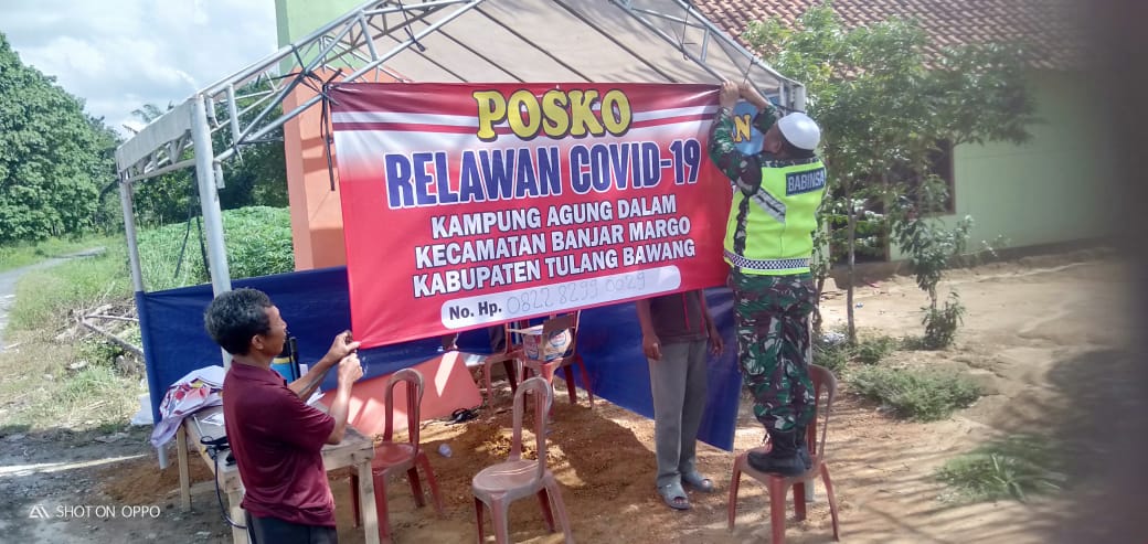 Sertu Ngadino Babinsa Koramil 426-02/Menggala, Bersama Warga dirikan Posko Pantau Covid-19.