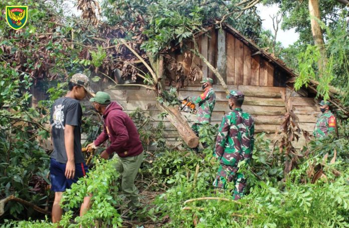 Anggota Kodim 0426 Bantu Warga Korban Puting Beliung