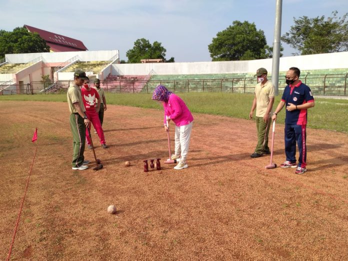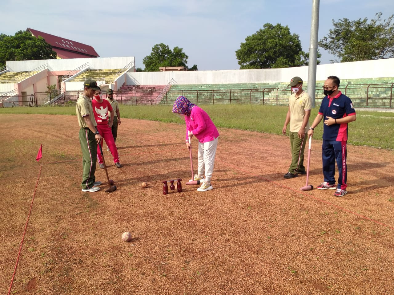 Anggota Kodim 0426 Bersama Kadiskepora Tuba Berlatih Woodball di Stadion Tiuh Tohou Tulang Bawang.