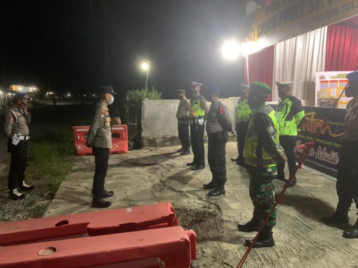 Anggota Koramil Rawajitu Bersama Tim Gabungan Memperketat Pembatasan Mudik Lebaran Tahun 2021 dan yustisi Covid 19.
