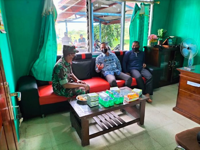 Anggota Koramil 426-03 Rawajitu, Kodim 0426 Tulang Bawang ini, mengajak masyarakat menerapkan prokes dengan cara 5 M yakni menggunakan masker, mencuci tangan pakai sabun, menghindari kerumunan, menjaga jarak, dan membatasi mobilitas.