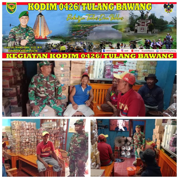 KODIM 0426/TB- Rawajitu Utara (Mesuji) — Babinsa Koramil 426-03 Rawajitu Kodim 0426 Tulang Bawang antisipasi Makanan Kadaluarsa ingatkan warga pemilik kios makanan di Desa Panggung Jaya, Kecamatan Rawajitu Utara, Kabupaten Mesuji, Kamis 31 Agustus 2023.