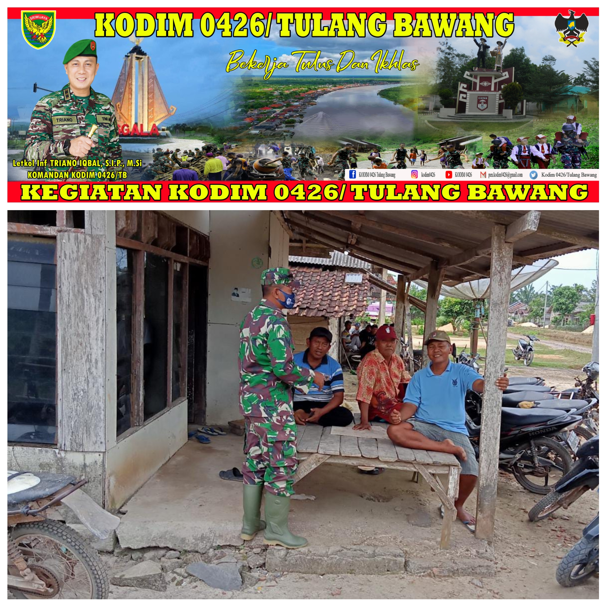 KODIM 0426/TB- Rawajitu Utara (Mesuji) — Sertu Maisi Babinsa Koramil 426-03 Rawajitu Kodim 0426 Tulang Bawang, melaksanakan anjangsana rutin guna menciptakan Keamanan dan Ketertiban warga dilingkungan RT 04 RK 03 yang kondusif, di Desa Sidang Bandar Anom, Kecamatan Rawajitu Utara, Kabupaten Mesuji, Rabu 05 Juli 2023.