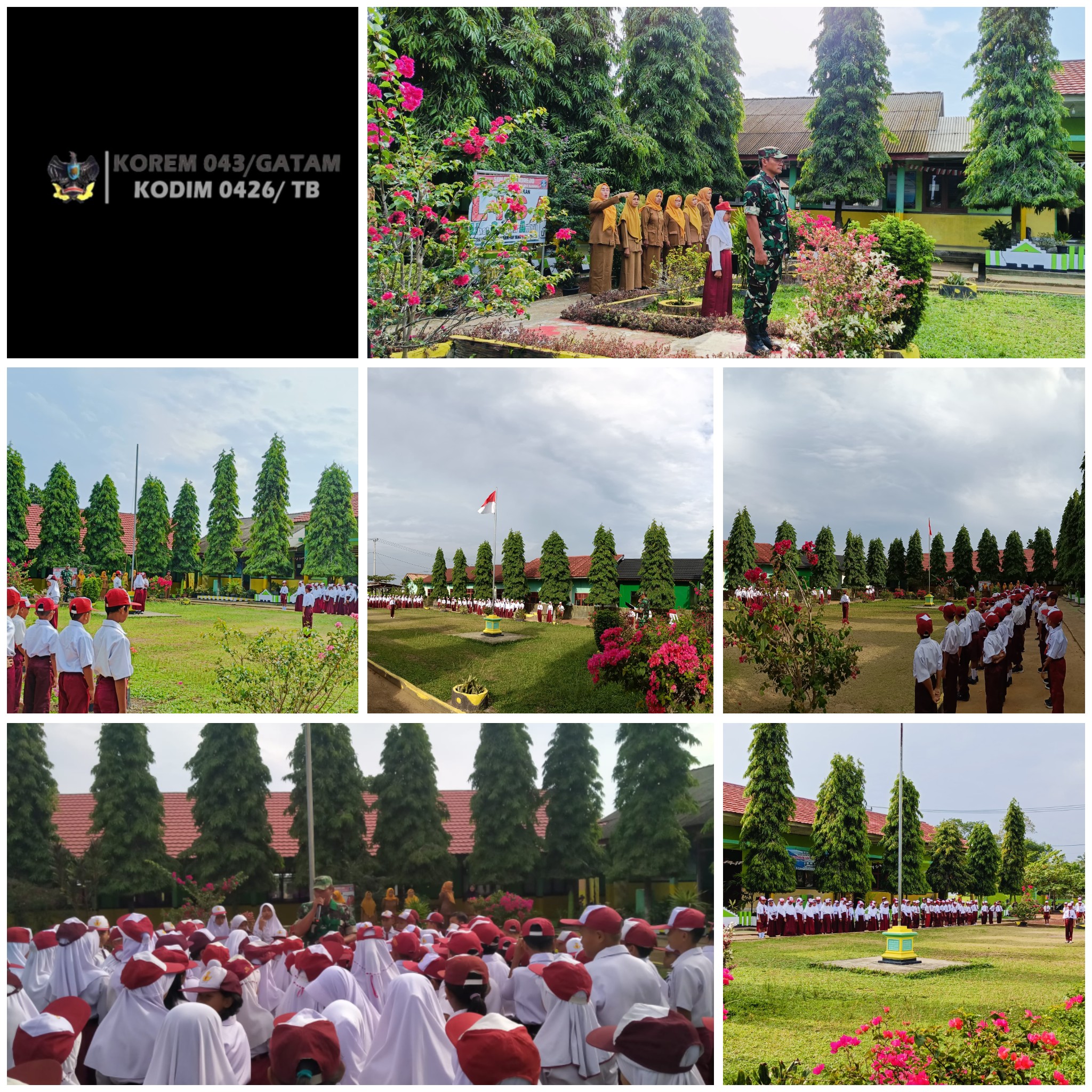 KODIM 0426/TB — Penawar Aji (Tulang Bawang) — Sertu Muji Babinsa Koramil 426-05/PA, Kodim 0426 Tulang Bawang, menjadi Pembina Upacara Bendera di SDN 01 Wonorejo, Kecamatan Penawar Aji, Kabupaten Tulang Bawang, Senin 09 Desember 2024.