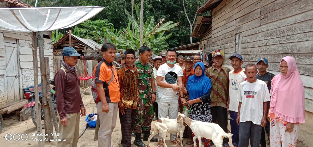 Babinsa Koramil 426-01/Mesuji Dampingi Kapala Desa Serahkan Bantuan Kambing.