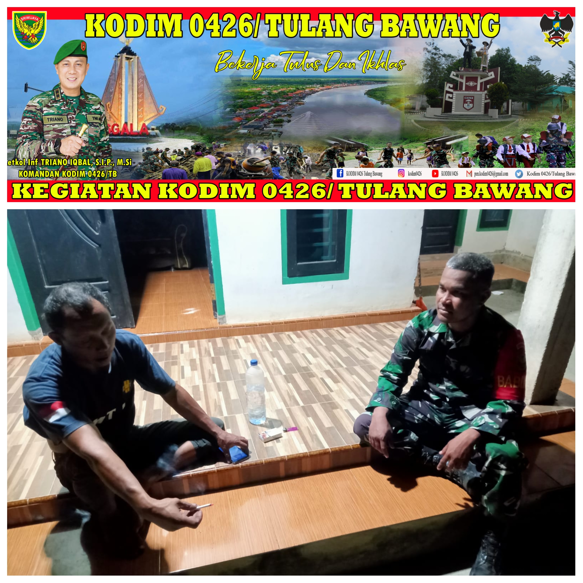 KODIM 0426/TB- Mesuji (Mesuji) — Babinsa Koramil 426-01 Simpang Pematang Kodim 0426 Tulang Bawang, melaksanakan komsos menghimbau meningkatkan ronda malam, Didesa Wiralaga Mulya, Di RK 02 Kecamatan Mesuji, Kabupaten Mesuji, Sabtu 19 Agustus 2023.