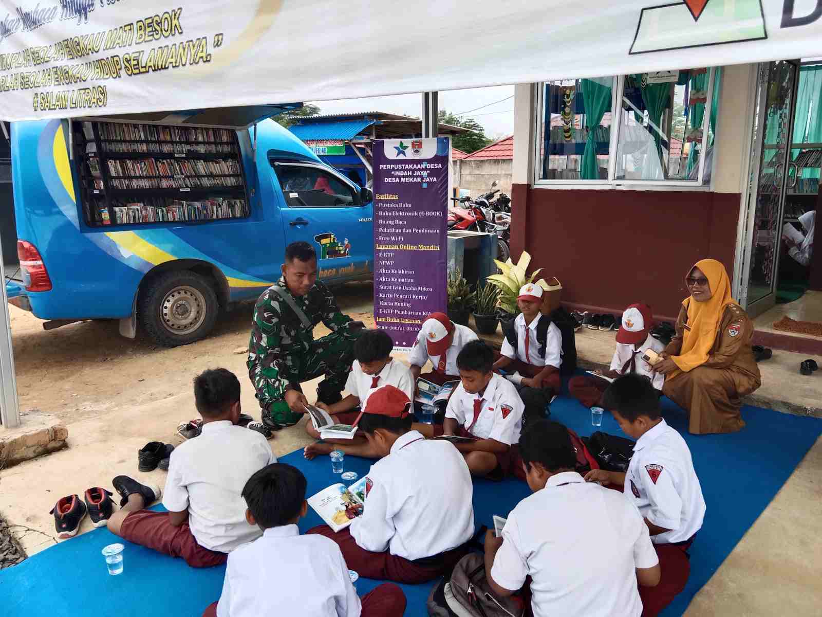 KODIM 0426/TB- Tanjung Raya (Mesuji) – Babinsa Koramil 426-01 Simpang Pematang, Kodim 0426 Tulang Bawang, Sertu Roy Martin mengajak anak-anak usia dini Agar Selalu gemar membaca.