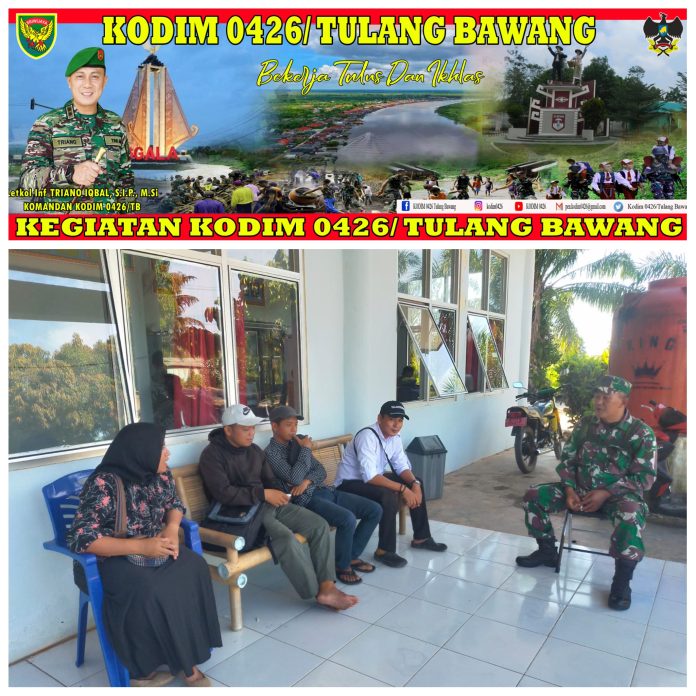 Rawajitu Timur (Tulang Bawang) — Babinsa Koramil 426-03 Rawajitu Kodim 0426 Tulang Bawang Serma Mugiyanto melaksanakan anjangsana ke warga binaan menghimbau menjaga kebersihan dan kesehatan Dikampung Bumi Depasena, Kecamatan Rawajitu Timur, Kabupaten Tulang Bawang, Minggu 14 Mei 2023.