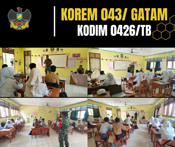 KODIM 0426/TB – – Rawajitu Selatan (Tulang Bawang) — Tiga personel Koramil 426-03 Rawajitu, Kodim 0426 Tulang Bawang memberikan pembekalan wawasan kebangsaan dan bela negara kepada siswa-siswi SMKN Rawajitu Selatan, Senin (20/10/2025). Kegiatan ini berlangsung di Kampung Medasari, Kecamatan Rawajitu Selatan.