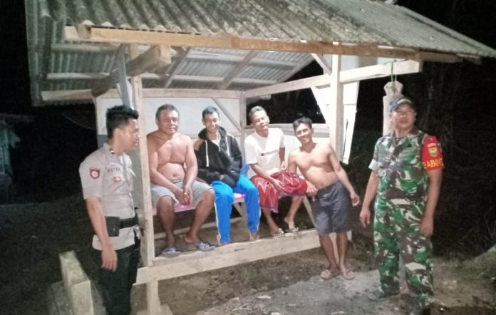 Babinsa Koramil 426-03/Rawajitu Bersama Babinkamtibmas Cek Ronda Malam Warga.
