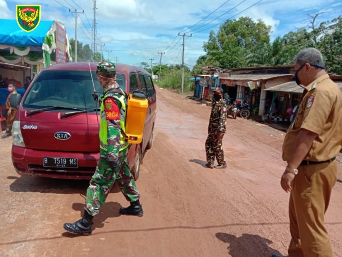 Babinsa Koramil 426-03 Rawajitu Bersama Kepala Kampung Jaga Posko Kovid-19 di Wono Agung