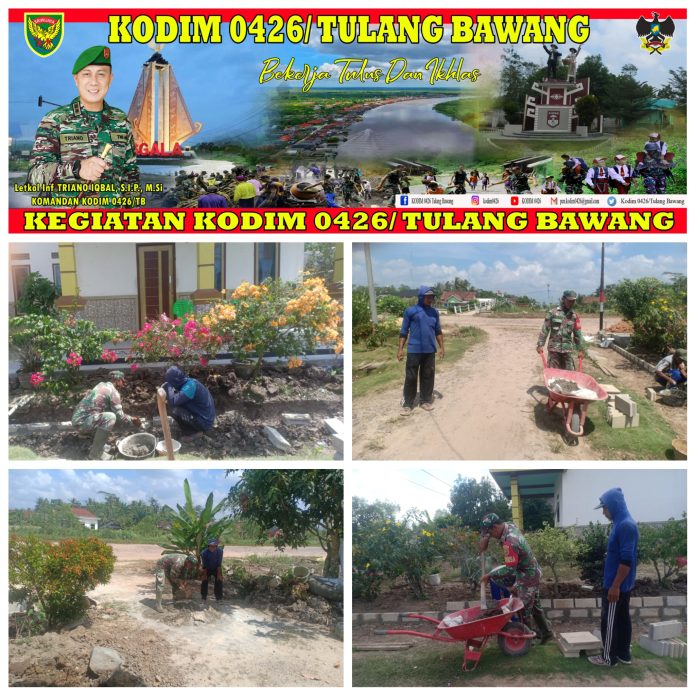 KODIM 0426/TB- Rawajitu Utara (Mesuji) Babinsa Koramil 426-03 Rawajitu Kodim 0426 Tulang Bawang bersama Warga Gotong Royong bangun talud mewujudkan Kemanunggalan TNI dan rakyat di Desa Sidang Kurnian Agung, Kecamatan Rawajitu Utara, Kabupaten Mesuji, Sabtu 02 September 2023.