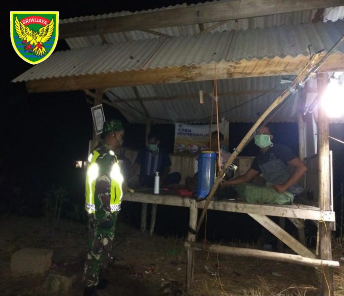 Babinsa Koramil 426-03 Rawajitu Cek Posko Pemantauan Covid-19 di Batas Kampung Hargomulyo
