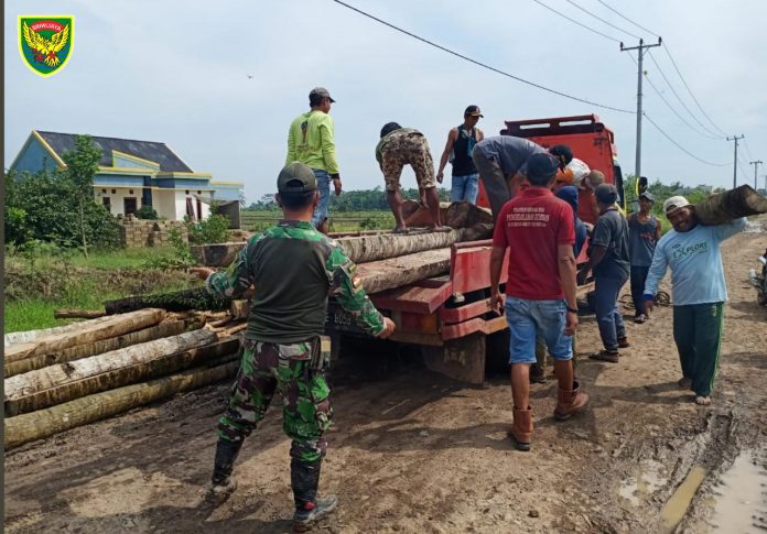 KODIM 0426/TB- RAWAJITU UTARA– Terdampak dengan tingginya curah hujan, jalan yang menghubungkan Desa Sidang Iso Mukti Kecamatan Rawajitu Utara, Kabupaten Mesuji dengan Desa Gedung Karyajitu, Kecamatan Rawajitu Selatan Kabupaten Tulang Bawang, rusak berat, sehingga sangat menghambat transportasi warga masyarakat yang menggunakan akses jalan tersebut.
