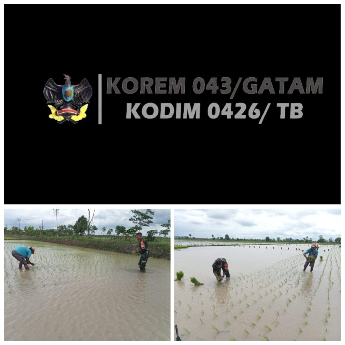 Babinsa Koramil 426-03/Rawajitu Melaksanakan Kegiatan Pendampingan Pertanian Menanam Padi Bersama Masyarakat