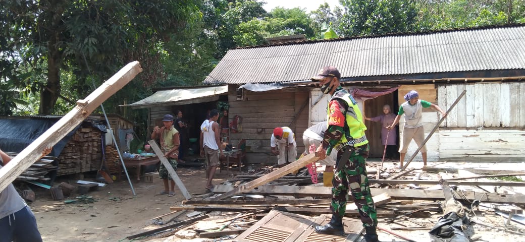 Babinsa Koramil 426-04/BA Gotong Royong Bongkar Rumah Warga
