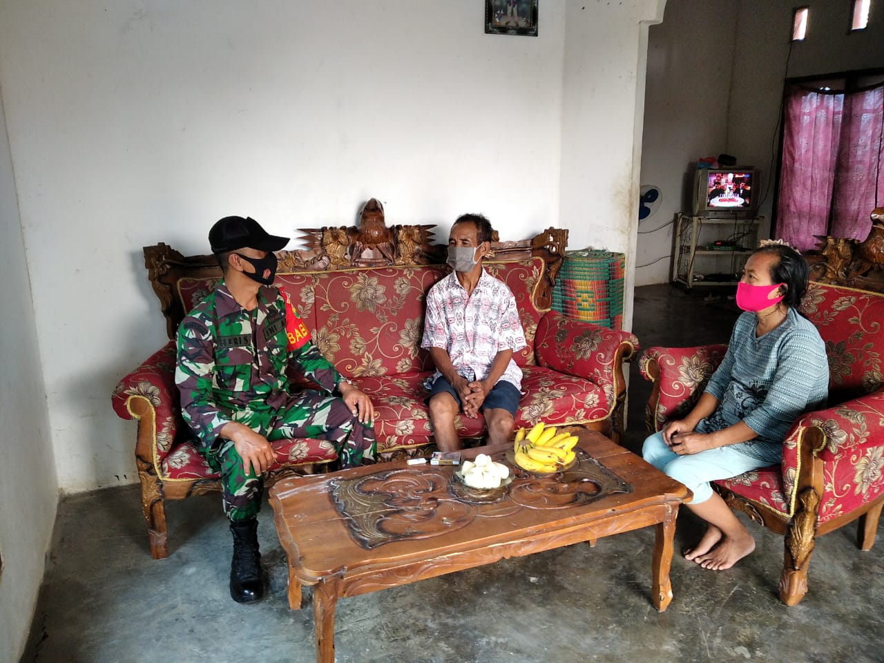 KODIM 0426/TB- TULANG BAWANG- Serda Heri S, Babinsa Koramil 426-04/ Banjar Agung, Kampung Tri Mukti Jaya, Kecamatan Banjar Agung, Kabupaten Tulang Bawang, melaksanakan kegiatan anjangsana dirumah Bapak Suranto membahas ketertiban dan keamanan wilayah, Jumat (1/01/2020).