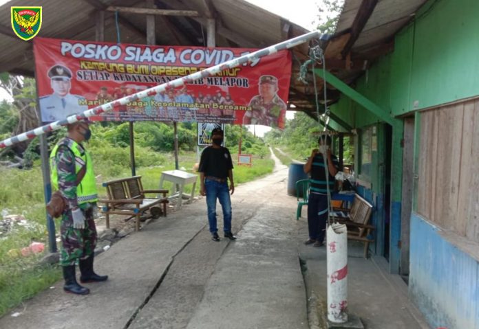 KODIM 0426/TB – RAWAJITU–Serka Mugiyanto, Bintara Pembina Desa (Babinsa) Koramil 426-03 Rawajitu, Kodim 0426 Tulang Bawang, melaksanakan monitoring Posko mandiri Covid-19 di Kampung Bumi Depasena Makmur, Kecamatan Rawajitu Timur, Kabupaten Tulang Bawang, Minggu (10-05-2020)