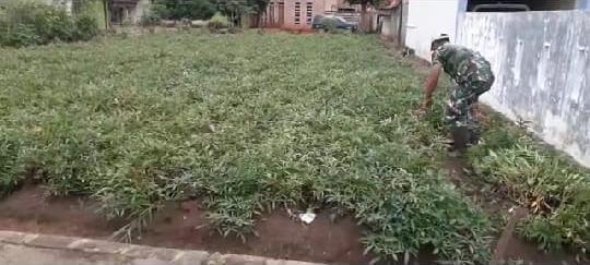 Babinsa Sertu Supriyono Manfaatkan Lahan Tanam Ubi Rambat.