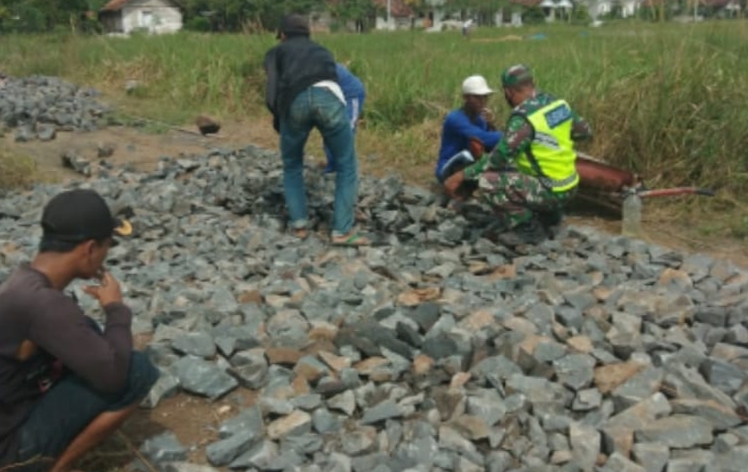 Bangkitkan Semangat Gotong Royong, Serda Widiyanto Bantu Warga Perbaiki Badan Jalan