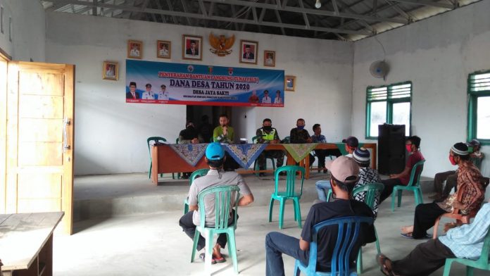 KODIM 0426)TB- MESUJI- Babinsa Desa Jaya Sakti, Koramil 426-01 Mesuji, Kecamatan Simpang Pematang, Kabupaten Mesuji, Serda Madsudin Pastikan bantuan langsung tunai (BLT) Tepat Sasaran, Minggu 25 Oktober 2020.