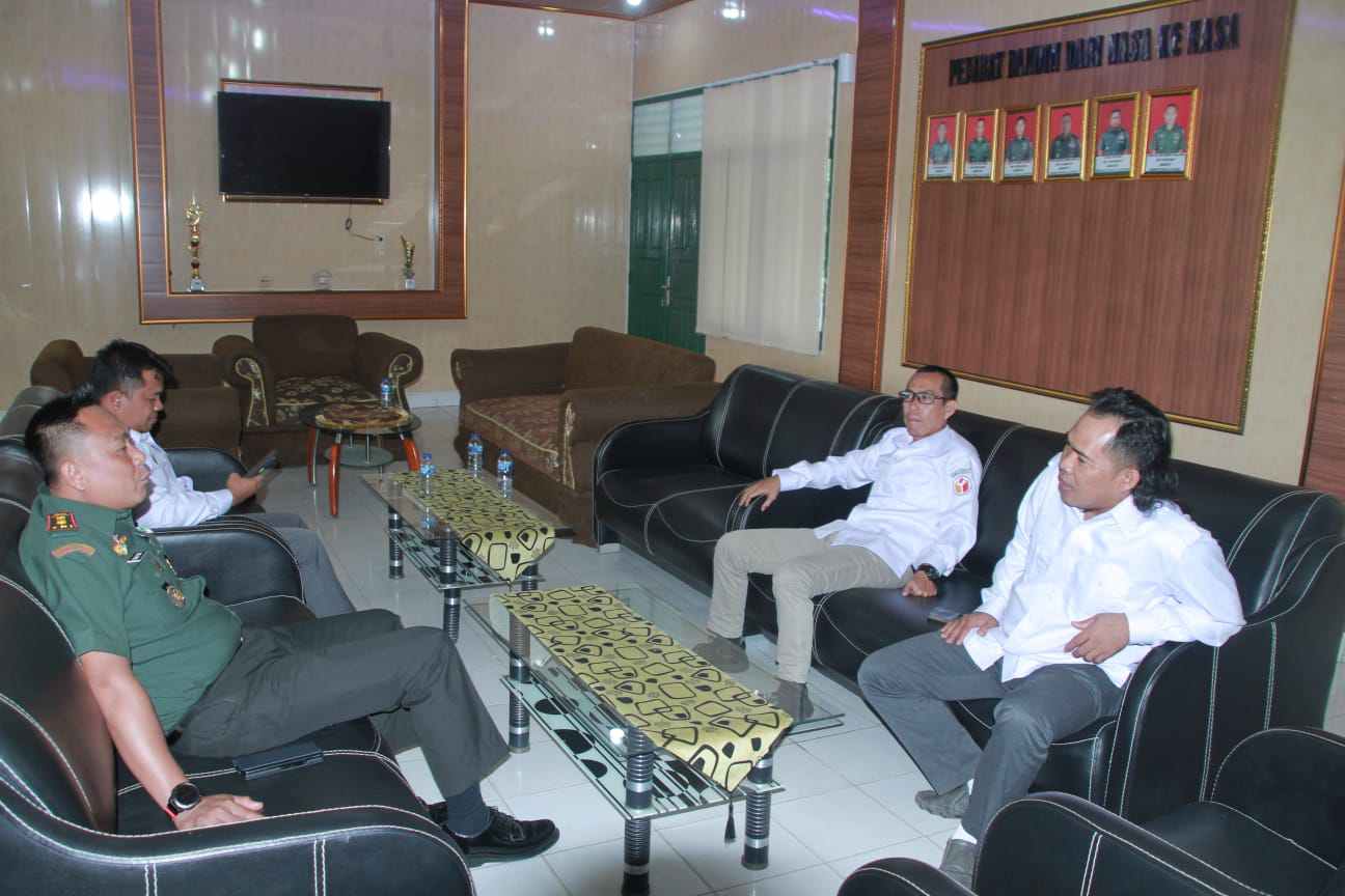 Ketua Bawaslu Afri Susanto, S.Pd Lihunsu beserta rombongan disambut langsung oleh Dandim 0426 Letkol Inf Triano Iqbal, S.I.P., M.Si.
