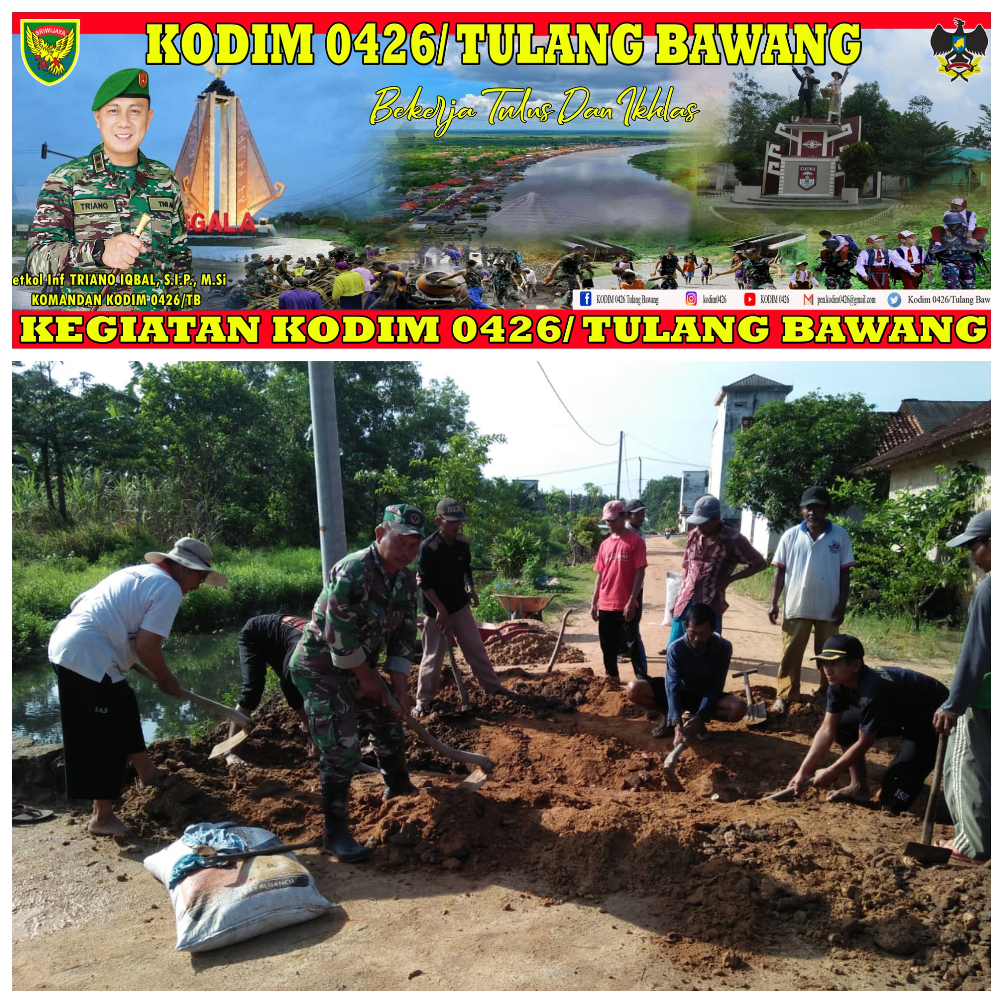 Bentuk Kepedulian Terhadap Warga Binaannya Serma Slamet Riyadi Bersama Warga Binaannya Melaksanakan Pembuatan Parit Jalan Untuk menjaga Kebersihan Lingkungan