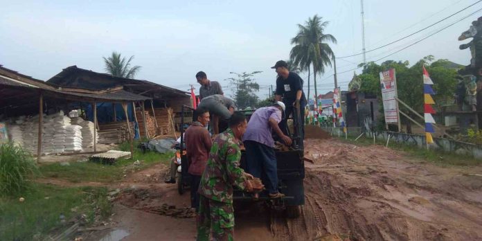 KODIM 0426/TB- Rawajitu Utara (MESUJI) – Babinsa Desa Sido Raharu, Kecamatan Rawajitu Utara, Kabupaten Mesuji, Sertu Maisi menghimbau masyarakat Kampung setempat menggelar gotong royong.