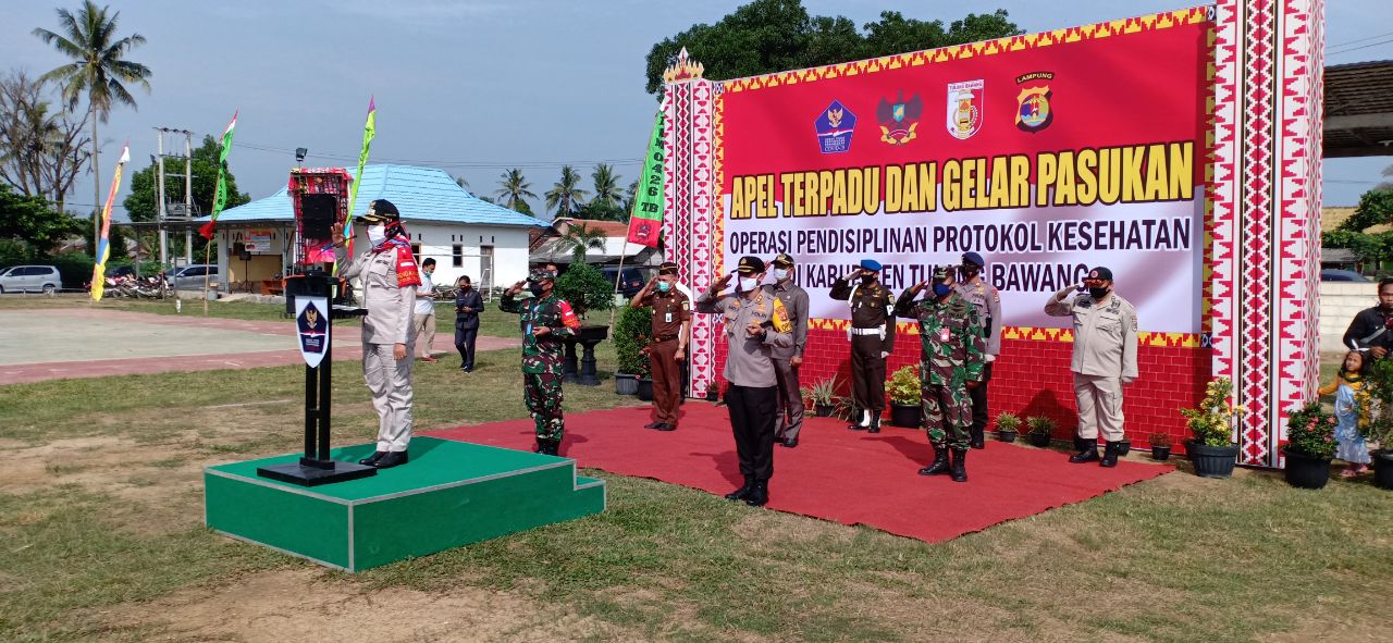 Bupati Tulang Bawang Pimpin Apel Terpadu dan Gelar Pasukan Operasi Pendisiplinan Protokol Kesehatan, Dandim 0426 Dansatgasnya