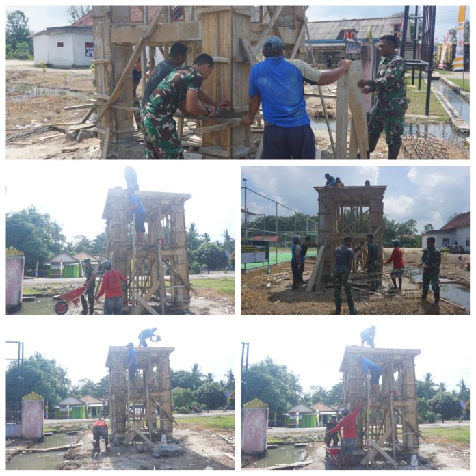 KODIM 0426/TB-Manunggal Membangun Desa (TMMD) Ke-119 Kodim 0426/Tulang Bawang menjadi tantangan berat bagi para anggota satgas. Lokasi pembangunan yang terbuka membuat pengerjaan terkena paparan langsung sinar matahari, sehingga cuaca panas yang ekstrem sangat menguras tenaga para anggota, Rabu 28 Februari 2024.