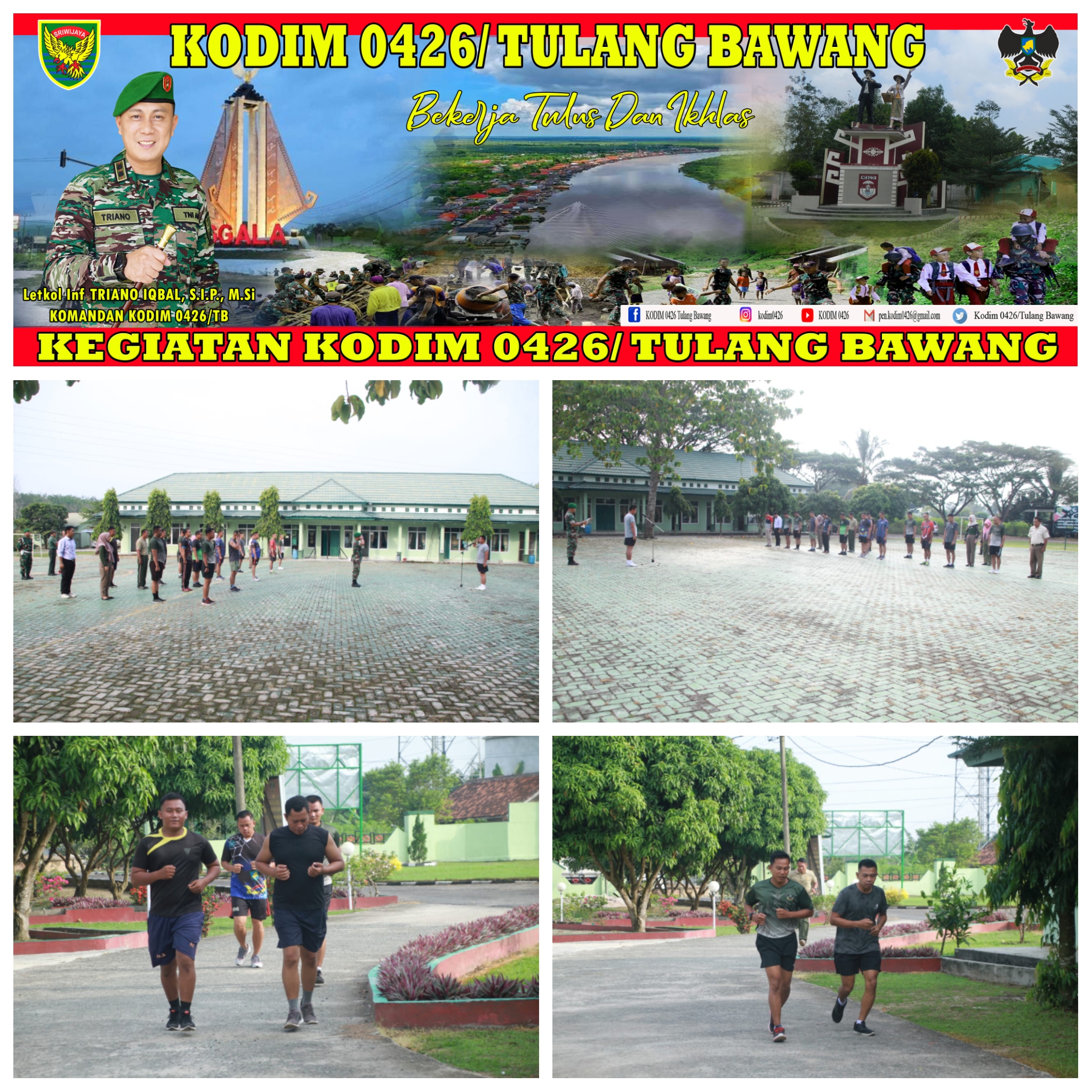 “Mari kita berolahraga dengan gembira sehingga kita dapat akan memiliki tubuh jasmani yang bugar dan dapat melaksanakan tugas dengan baik sehingga moto Kodim, BEKERJA TULUS DAN IKHLAS dapat tercapai.