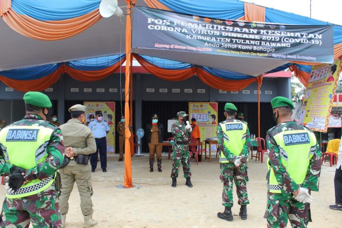 KODIM 0426/TB – Senin 06 April 2020. Jajaran Forkopimda Kabupaten Tulang Bawang dipimpin langsung oleh Bupati Tulang Bawang Hj. Winarti, S.E., M.H., melaksanakan pengecekan langsung ke Posko Pengawasan dan pencegahan covid-19 yang ada di wilayah Kabupaten Tulang Bawang.