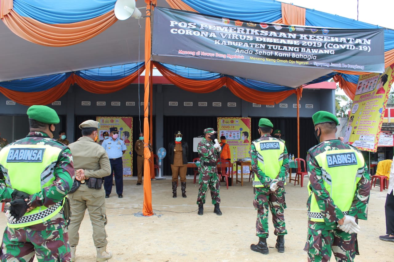 Saat di Posko Bujuk Agung Perbatasan dengan Kabupaten Mesuji, Komandan Kodim 0426 Tulang Bawang Letkol Inf Kohir memberikan arahan kepada para petugas yang berjaga di Posko, agar pelaksanaan tugas dapat berjalan dengan baik, para petugas harus selalu memperhatikan dan melaksanakan protap tentang pencegahan penularan covid-19.