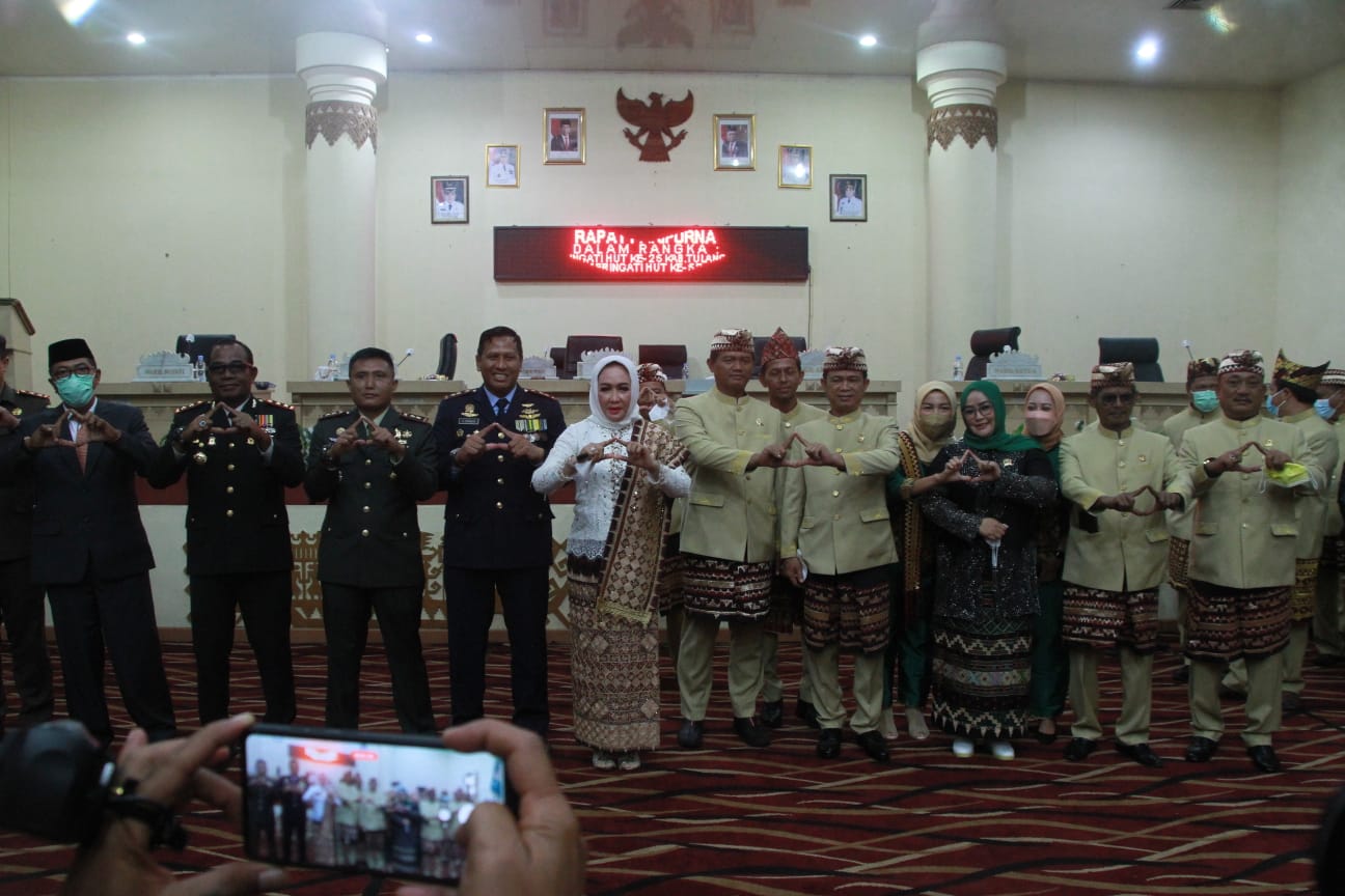 KODIM 0426/TB- Komandan Kodim 0426 Letkol Kav Joko Sunarto hadiri rapat paripurna istimewa dalam rangka memperingati HUT Ke-25 Kab.Tuba dan memperingati HUT ke-58 Provinsi Lampung dengan tema ” Tulang Bawang Maju dan Sejahtera dengan Semangat Gotong royong dan Keragaman ” di Kab. Tulang Bawang, Minggu tanggal 20 Maret 2022.
