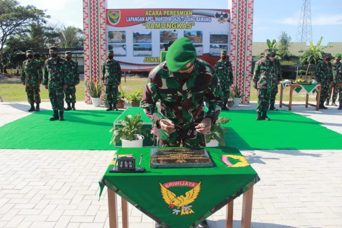 KODIM 0426/TB- TULANG BAWANG– Komandan Kodim (Dandim) 0426 Tulang Bawang Letkol Inf Kohir meresmikan penggunaan lapangan apel yang telah direnofasi di Makodim Jl. Lintas Timur KM 113 Menggala- Tulang Bawang, Jum’at (31/7/2020)