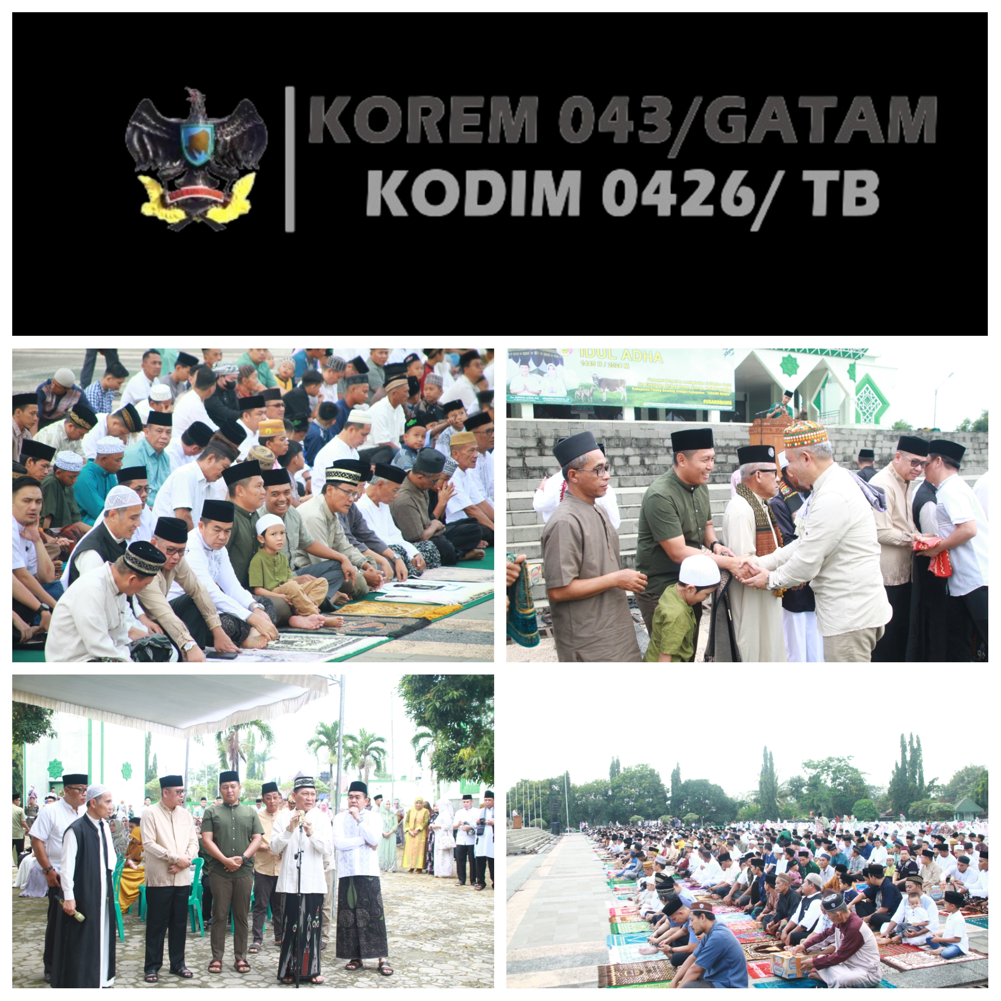KODIM 0426/TB-Menggala (Tulang Bawang) — Komandan Kodim 0426 Tulang Bawang, Letkol Kav Delvy Marico, S.E., M.I.P. Forkopimda Tulang Bawang melaksanakan Sholat Idul Adha 1446 H/2024 M, bersama di Masjid Baiturrahman Islamic Centre, Kecamatan Menggala, Kabupaten Tulang Bawang, Senin 17 Juni 2024.