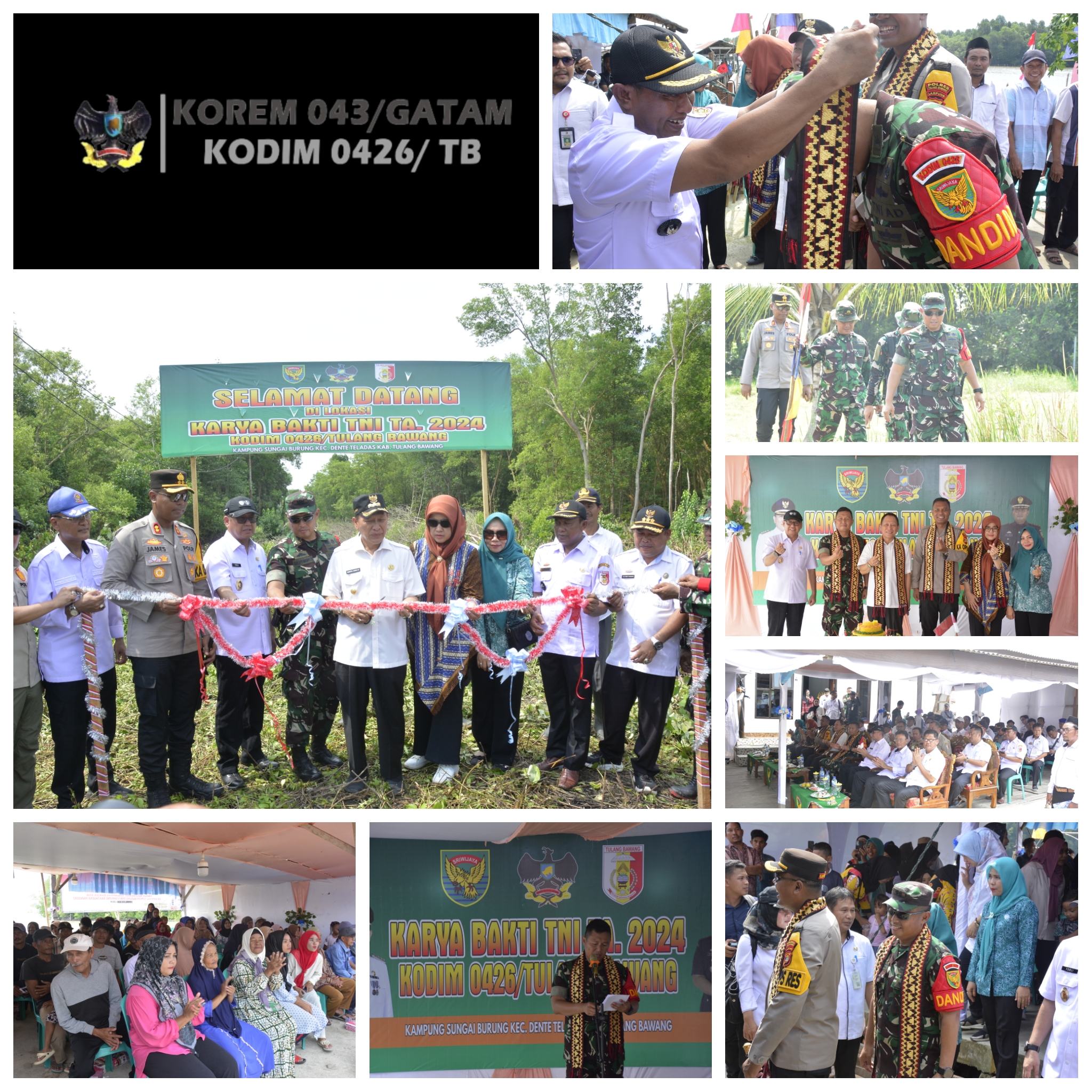 KODIM 0426/TB- Dente Teladas (Tulang Bawang) — Komandan Kodim 0426 Tulang Bawang Letkol Kav Delvy Marico, S.E., M.I.P. Membuka secara resmi karya bakti TNI tahun anggaran 2024 di Kampung Sungai Burung, Kecamatan Dente Teladas, Kabupaten Tulang Bawang.
