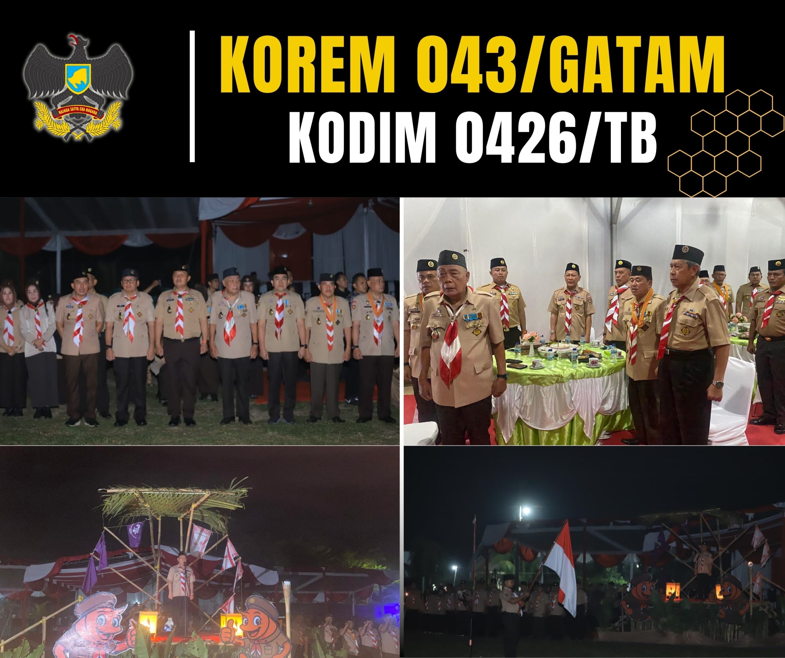 KODIM 0426/TB – – Banjar Agung (Tulang Bawang) — Komandan Kodim 0426 Tulang Bawang, Letkol Kav Delvy Marico, S.E., M.I.P., menghadiri malam ramah tamah dan pembacaan Janji Hari Pramuka ke-64 yang diselenggarakan di Balai Kampung Tri Tunggal Jaya, Kecamatan Banjar Agung, Kabupaten Tulang Bawang, pada Jumat malam, 29 Agustus 2025.