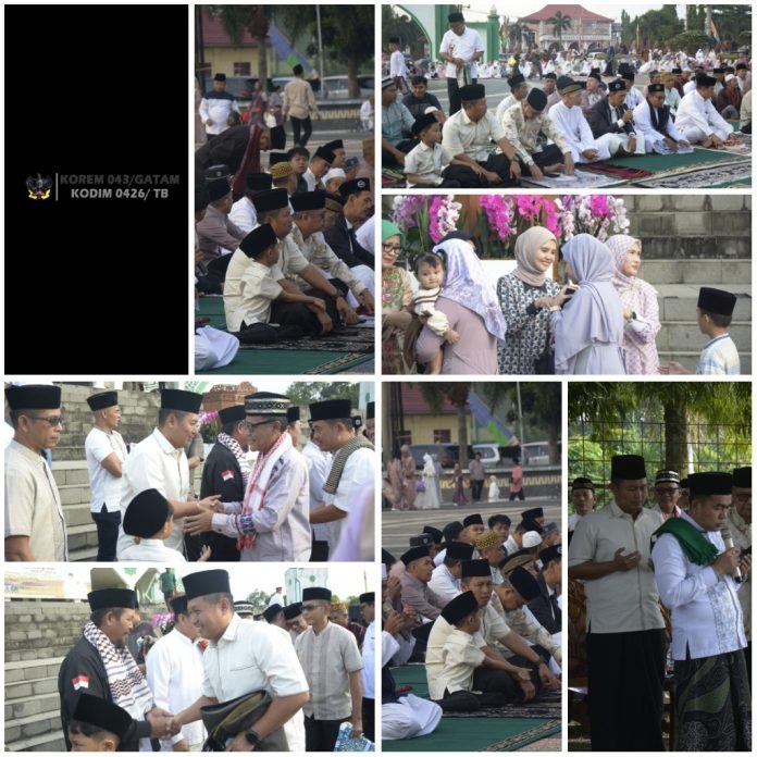Usai sholat idul adha, Dandim 0426 TB, menyampaikan, rasa syukur di pagi hari ini masih diberi kesempatan oleh Allah SWT untuk menunaikan ibadah shalat Idul Adha 1446 H.