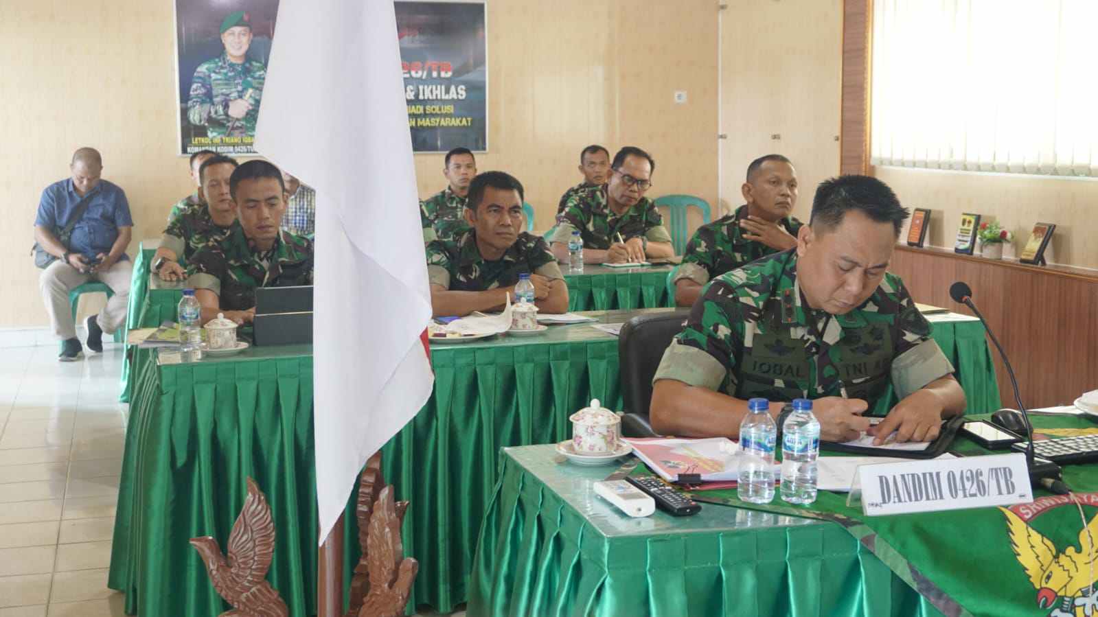 “Ya, hari ini ada arahan langsung dari Bapak Kasad melalui Vicon. Saya didampingi Pasi OPS, Pasi Pers, dan Pasi Ter menerima arahan langsung. Intinya, kami diminta untuk dengan sungguh sungguh menjalankan fungsi dan tugas pokok sebagai prajurit TNI AD,” jelas Dandim.