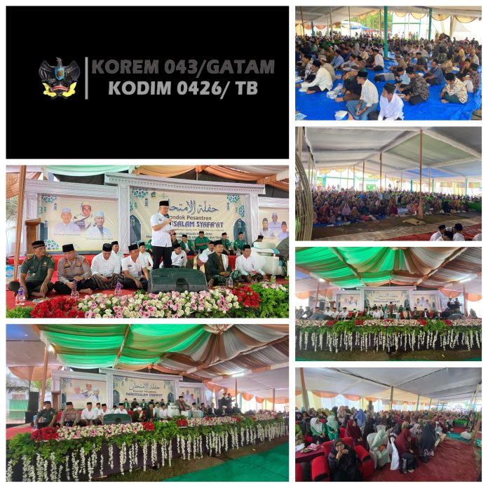 KODIM 0426/TB-Banjar Agung (Tulang Bawang) — Danramil 426-04/BA Lettu Inf Muhammad Yusuf menghadiri pengajian Akbar yang bertempat di halaman Pondok Pesantren Darussalam Syafa’at Unit 3 Kampung Moris Jaya, Kecamatan Banjar Agung, Kabupaten Tulang Bawang, Rabu 12 Juni 2024.