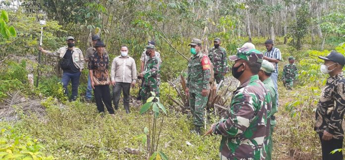KODIM 0426/TB- Komandan Koramil 426-01 Mesuji, Mayor Kav A.R Chaerul memimpin langsung pengukuran lahan yang dihibahkan oleh Pemda Mesuji untuk pembangunan Kompi Senapan B Batalyon 143/TWEJ, Desa Berasan Makmur, Kecamatan Tanjung Raya, Mesuji, Kamis 29 April 2021.