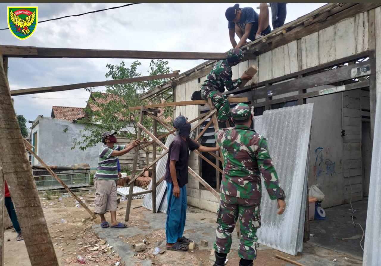 KODIM 0426/TB – TULANG BAWANG– Warga Masyarakat di dua Kecamatan Banjar Margo dan Banjar Agung Kabupaten Tulang Bawang, berusaha benahi kerusakan tempat tinggal mereka akibat bencana angin puting beliung yang terjadi Rabu, 20-05-2020.