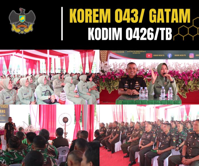 KODIM 0426/TB – – Menggala (Tulang Bawang) — Di hari pertama menjabat sebagai Komandan Kodim (Dandim) 0426 Tulang Bawang, Letkol Inf Syurya Dharma langsung memberikan Jam Komandan (Jamdan) kepada seluruh prajurit, PNS, dan ibu-ibu Persit di lingkungan Kodim 0426 Tulang Bawang. Kegiatan tersebut berlangsung di Lapangan Pamungkas, Jl. Lintas Timur Sumatera KM 113, Kampung Bujung Tenuk, Kecamatan Menggala, Kabupaten Tulang Bawang, pada Jumat, 31 Oktober 2025.