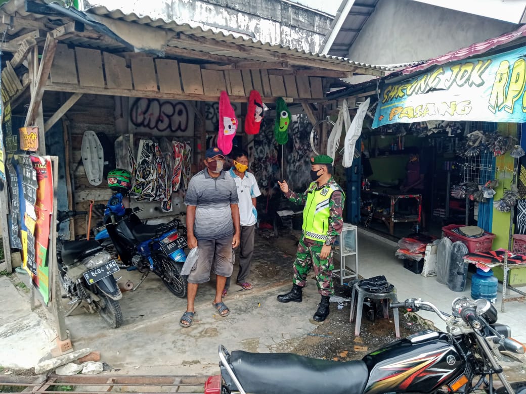 KODIM 0426/TB- MESUJI- Jajaran Koramil 426-01 Mesuji, Kodim 0426 Tulang Bawang, melalui Babinsanya terus ingatkan masyarakat tentang protokol kesehatan.
