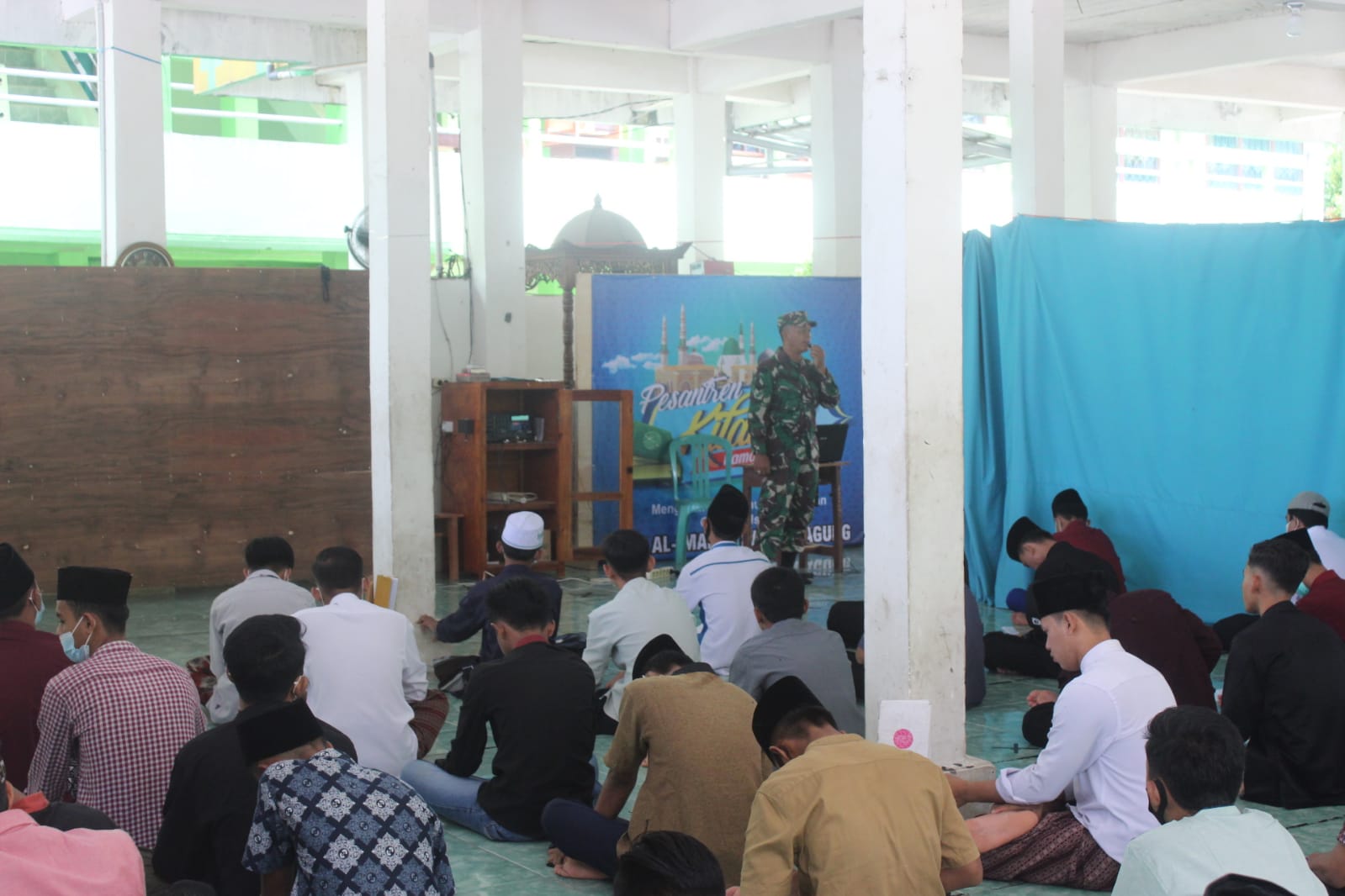 Sertu Supriyono, Babinsa Koramil 426-04 Banjar Agung, Kodim 0426 Tulang Bawang memberikan materi Wasbang kepada para siswa dan siswi SMK Al Iman-1 Jl Lintas Timur Unit II Kecamatan Banjar Agung, Kabupaten Tulang Bawang, Jum’at (16/04/2021)