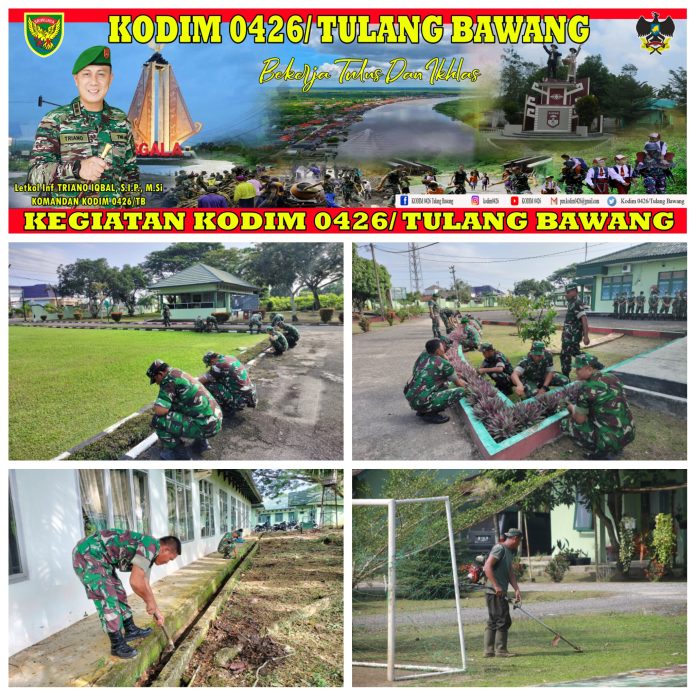 Jaga Kebersihan dan Keindahan, Kodim 0426 Tulang Bawang Melaksanakan Pembersihan Pangkalan