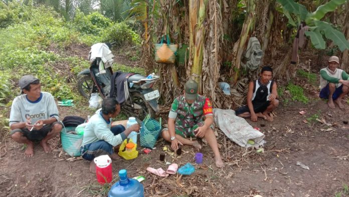 Jalin Komunikasi, Babinsa Koramil 426-03/Rawajitu Sambangi Warga di Kebun.
