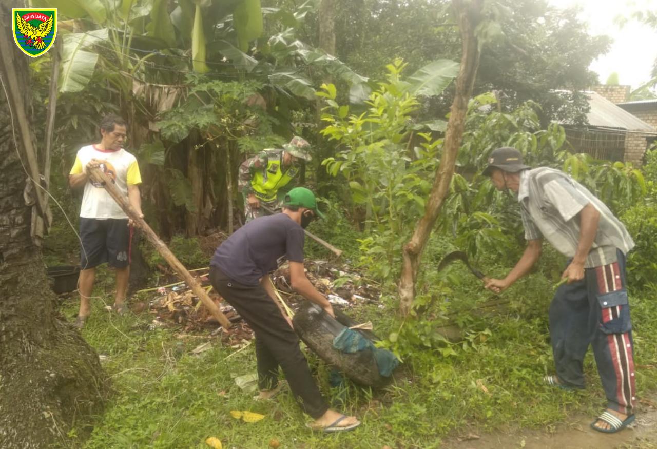 Jum’at Bersih Wujud Kesadaran Warga Dalam Menjaga Kebersihan Lingkungan, Kata Babinsa Koramil 426-03 Rawajitu.