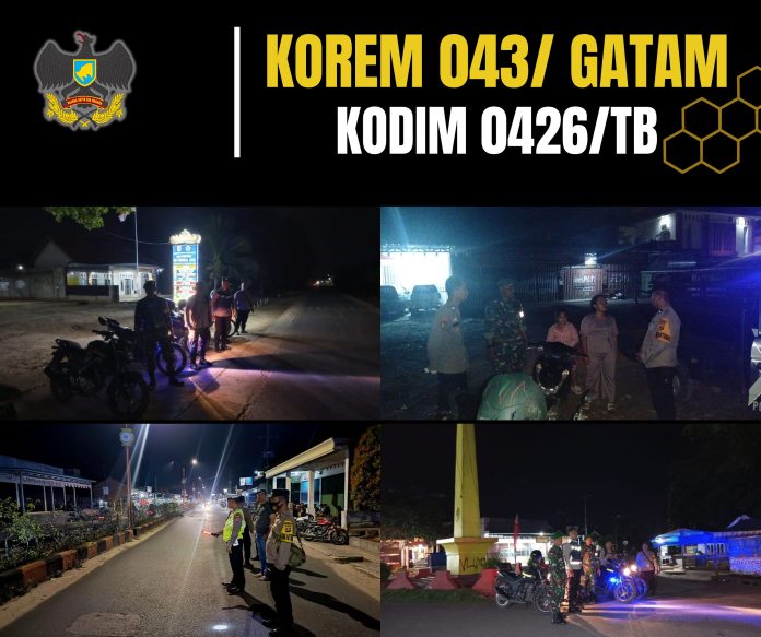 KODIM 0426/TB – – Banjar Agung (Tulang Bawang) — Danramil 426-04/BA, Kapten Inf. Muhammad Yusuf, memimpin langsung kegiatan Patroli Keamanan Gabungan TNI-Polri di wilayah Kecamatan Banjar Agung pada Sabtu malam, 18 Oktober 2025. Kegiatan ini bertujuan menjaga keamanan dan ketertiban masyarakat, serta mengantisipasi aksi balap liar yang kerap terjadi di malam hari.